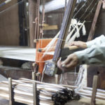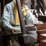 巻き直された糸を織るのが最後の工程です。 織の工程では、ひとつひとつの柄により経験と勘がものを言う世界で、こちらも熟練を要します。