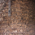 締機でくくった後は、絣筵(むしろ)と呼ばれる一見ござのような糸の束が出来ます。